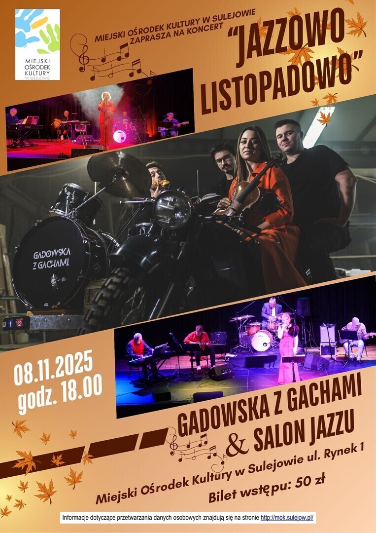 Gadowska z Gachami & Salon Jazzu koncert w Miejskim Ośrodku Kultury w Sulejowie, 8 listopada o godz. 18:00 zapraszamy!