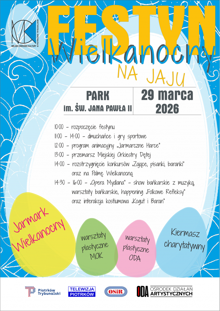 Zapraszamy wszystkich mieszkańców Piotrkowa Trybunalskiego do wspólnego świętowania! Już 29 marca 2026 roku Park im. św. Jana Pawła II wypełni się świąteczną energią, muzyką i atrakcjami dla całych rodzin.