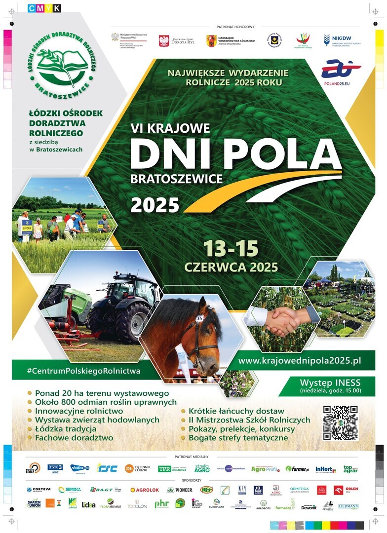 Już 13 -15 czerwca 2025 odbędą się Krajowe Dni Pola w Bratoszewicach – wydarzenie, które łączy nowoczesne technologie, innowacyjne maszyny, naukę i pasję do rolnictwa! Pokazy maszyn rolniczych, nowoczesne technologie wspierające codzienną pracę w polu oraz rozwiązania, które zmieniają polskie rolnictwo – to wszystko czeka na Was w Bratoszewicach! W niedzielę o godz. 15:00 zapraszamy na muzyczny relaks z INESS, która zadba o dobrą atmosferę! Nie przegapcie okazji, by spotkać ekspertów, wymienić się doświadczeniami i zainspirować się nowinkami technologicznymi w rolnictwie! Pamiętajcie, że Krajowe Dni Pola to nie tylko prezentacje maszyn i technologii, ale również świetna okazja do rozmów z producentami, doradcami i innymi rolnikami. Będzie to idealny moment na zainwestowanie w przyszłość Waszego gospodarstwa!