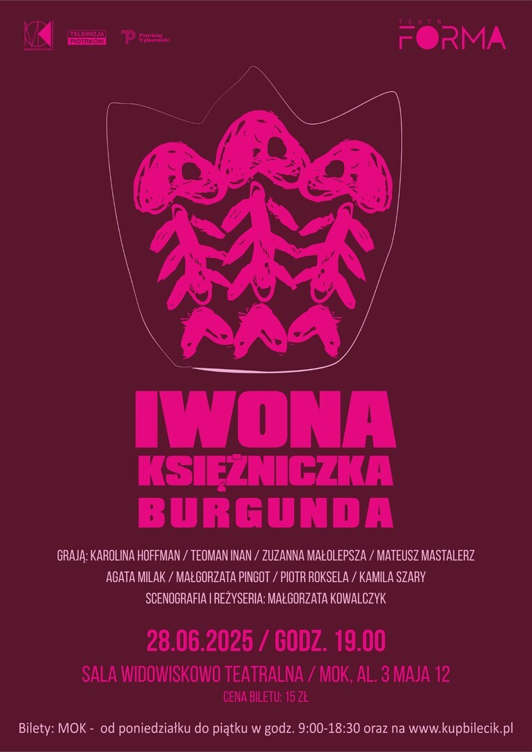 "Iwona, księżniczka Burgunda" to spektakl oparty na dramacie Witolda Gombrowicza o tym samym tytule. Gombrowicz obnaża i wyśmiewa konwenanse i relacje społeczne oraz bada formę, która stwarza się między ludźmi. Tytułową postacią jest milcząca Iwona, której pojawienie się na królewskim dworze wywołuje szereg zaskakujących wydarzeń. Spektakl Teatru Forma pokazuje, że świat jest absurdalny, nieadekwatny i nieobliczalny.