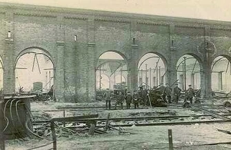 4. Piotrkowska parowozownia w trakcie budowy- jedno z nielicznie zachowanych archiwalnych zdjęć tego obiektu.