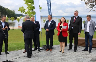 Zalew Sulejowski nie doczekał się nigdy kapitalnego remontu. To moment przełomowy, wreszcie będzie mógł w pełni spełniać swoje funkcje [...] Dlatego dzisiaj została podpisana umowa na wykonanie dokumentacji przedprojektowej, studium wykonalności, programu funkcjonalno-użytkowego na rewitalizację zbiornika wodnego. Zalew Sulejowski, który funkcjonuje od 51 lat i tak naprawdę nie doczekał się nigdy kapitalnego remontu. Rewitalizacja, która jest tutaj bardzo konieczna. Podpisaliśmy umowę także na budowę dwóch jazów wodnych. Przeznaczamy na to około 200 milionów złotych. Posiłkują nas oczywiście pieniądze unijne z programu Feniks - powiedział minister infrastruktury Dariusz Klimczak.