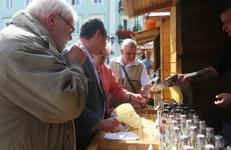 Na płycie Rynku królują nalewki. Do naszego miasta przyjechali producenci z całej Polski, by prezentować swoje produkty. - Szeptucha, dereń, rokitnik, róża – te są najlepsze, bo leżakują najdłużej, minimum dwa lata, ale polecamy wszystkie nasze nalewki – powiedział nam Łukasz Paradowski, nalewkarz z Ciechanowa, jeden z wystawców. - Przez rok owoce macerują się w alkoholu, potem są wyciskane przez prasę winiarską, później leżakują jeszcze rok, wyrównywane jest stężenie alkoholu ze spirytusu do 30%, 20 i 18. Następnie nalewka jest rozlewana do butelek. Szczególnie polecam nalewkę z rokitnika. To jest owoc, który wygląda jak jarzębina, ale jest pomarańczowy, nazywany rosyjskim ananasem. To nalewka o dużej zawartości witaminy C, bardzo rozgrzewająca, regenerująca organizm. Wśród gości III Trybunałów Nalewkowych w Piotrkowie największą popularnością cieszą się rokitnik właśnie, ale także nalewka z derenia.