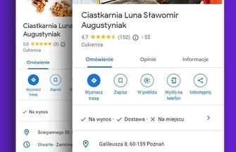 Gdy w asortymencie jest to, czego szukamy, a komentarze są pozytywne, kolejnym krokiem jest sprawdzenie dokładnej lokalizacji na Mapach Google (robi tak 86% wszystkich użytkowników).
