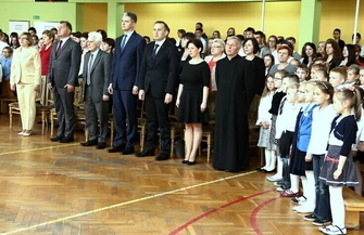 Uroczystość zakończyły wystąpienia gości, w których wyrazili uznanie za osiągnięcia szkoły i prace dydaktyczno – wychowawczą, a Pan Adama Jarubas wręczył upominki dla uczniów w postaci gier „Zaczarowana Kraina.
