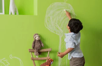 Niespożyte pokłady energii, niekonwencjonalne pomysły, najbardziej zaskakujące aktywności. Ściany pokoju malucha muszą stawić czoło wielu „zagrożeniom”. Zdecydujmy się zatem na produkt odporny na intensywne codzienne eksploatowanie – farbę „dziecioodporną”. Szukamy preparatu odpornego na mycie (plamy w pokojach dla chłopców to codzienność) i szorowanie, dzięki czemu z łatwością zmyjemy ślady soku marchewkowego, kredek czy dłoni. Jednocześnie postawmy na taki produkt, który nie ograniczy nas jeśli chodzi o wybór kolorów. W palecie hydrofobowej, trwałej farby Dulux EasyCare znajdziemy 48 barw, które pokocha każdy chłopak.