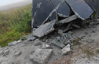 Dwa betonowe szamba spadły z pojazdu ciężarowego, co przyczyniło się do uszkodzenia jednego samochodu, który najechał na elementy roztrzaskanych zbiorników.