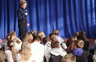 Bezpieczeństwo w szkole i w sieci – spotkanie z policjantką w SP nr 5