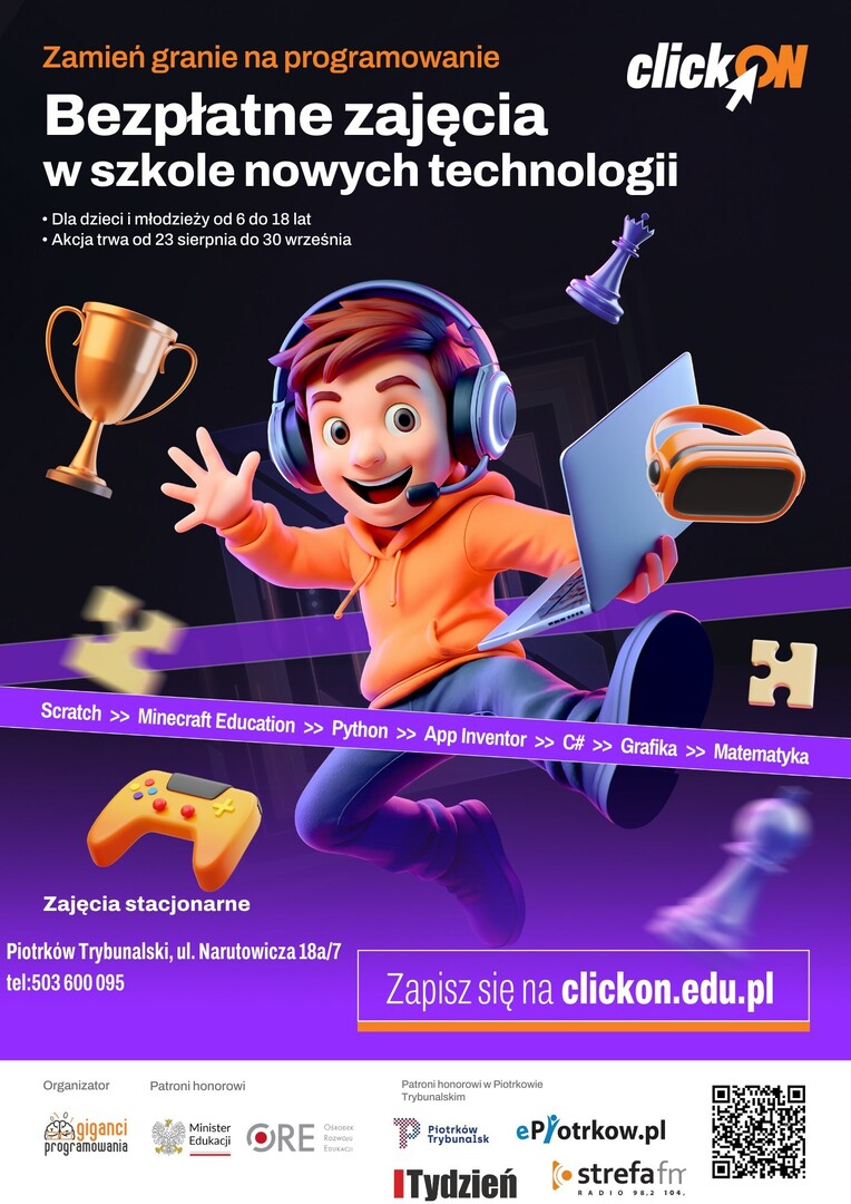 23 sierpnia w Piotrkowie rozpoczynają się bezpłatne zajęcia dla dzieci i młodzieży od 6 do 18 lat. Będą mogli nauczyć się programowania. Akcja potrwa do końca września.