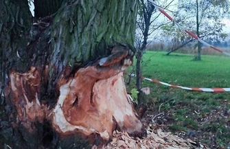Coraz więcej drzew w okolicach piotrkowskiego kąpieliska Słoneczko jest podgryzanych przez bobry. Jedno z nich, bardzo okazałe, jest na tyle zniszczone, że może je powalić silny wiatr.