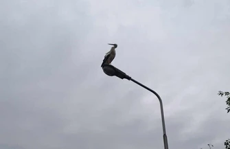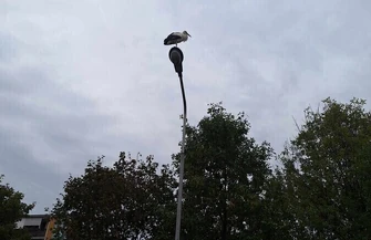 Paweł Kowalski apeluje, aby absolutnie nie dokarmiać bociana. Służby wieczorem pojadą na miejsce, aby bociana złapać.
