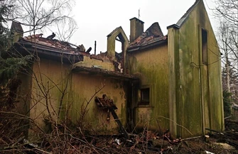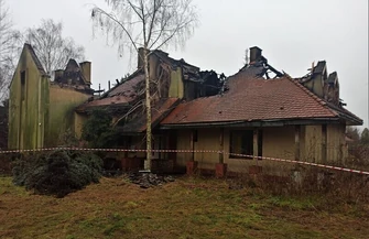 Akcja gaśnicza już się zakończyła. Dom niemal całkowicie spłonął i nadaje się już tylko do rozbiórki.