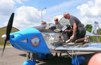 Samolot, który testuje kamerę wyróżnia się swym wyglądem spośród pozostałych, stojących na piotrkowskim lotnisku. Jest wykonany z polerowanej blachy, która przypomina lustro. - Samolot malowany ważyłby 12 kg więcej, nigdy nie osiągnęlibyśmy takiej doskonałości skrzydeł jaką można osiągnąć na skrzydłach polerowanych, a dokładnie za pomocą blachy polerowanej. To dzięki niej samolot przemieszcza się z prędkością przelotową 240 km/h. Dla porównania samoloty aeroklubowe latają z średnią prędkością 150 km/h – wyjaśnia Henryk Szkudlarz.