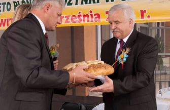 Starostami tegorocznych dożynek gminnych byli Agata Zielonka i Arkadiusz Doromuniec. To właśnie oni wręczyli dożynkowy bochen chleba burmistrzowi gminy Sulejów Stanisławowi Baryle.