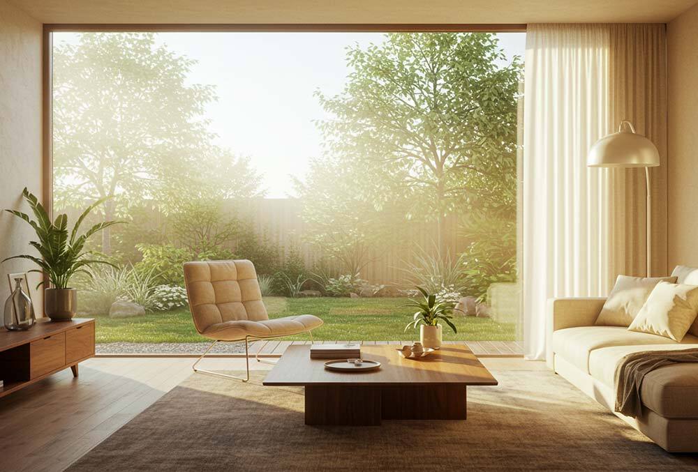 Dobrze, gdy Lt przekracza 70%. Ale to nie wszystko. Znaczenie ma również konstrukcja ramy. Im węższe profile, tym większa powierzchnia szyby, a co za tym idzie, więcej światła i optyczna lekkość wnętrza. To szczególnie istotne w nowoczesnych aranżacjach, w których chcemy uniknąć ciężkości oraz ciemnych zakamarków, a zamiast tego stawiamy na przestrzeń, która po prostu oddycha.