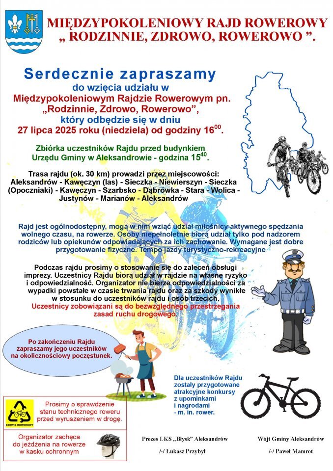 Międzypokoleniowy Rajd Rowerowy „Rodzinnie, Zdrowo, Rowerowo” - Aleksandrów, zbiórka przy Urzędzie Gminy