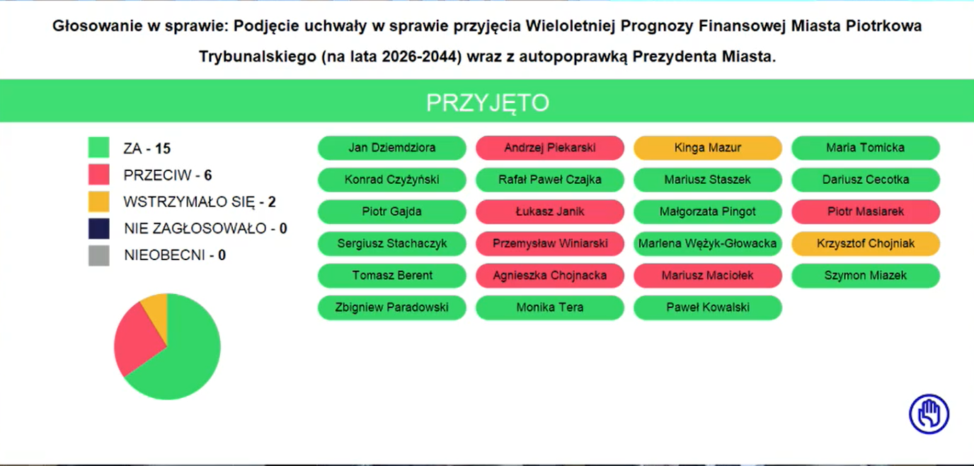 Koniec przerwy - radni za przyjęciem Wieloletniej Prognozy Finansowej Miasta Piotrkowa Trybunalskiego (na lata 2026-2044).