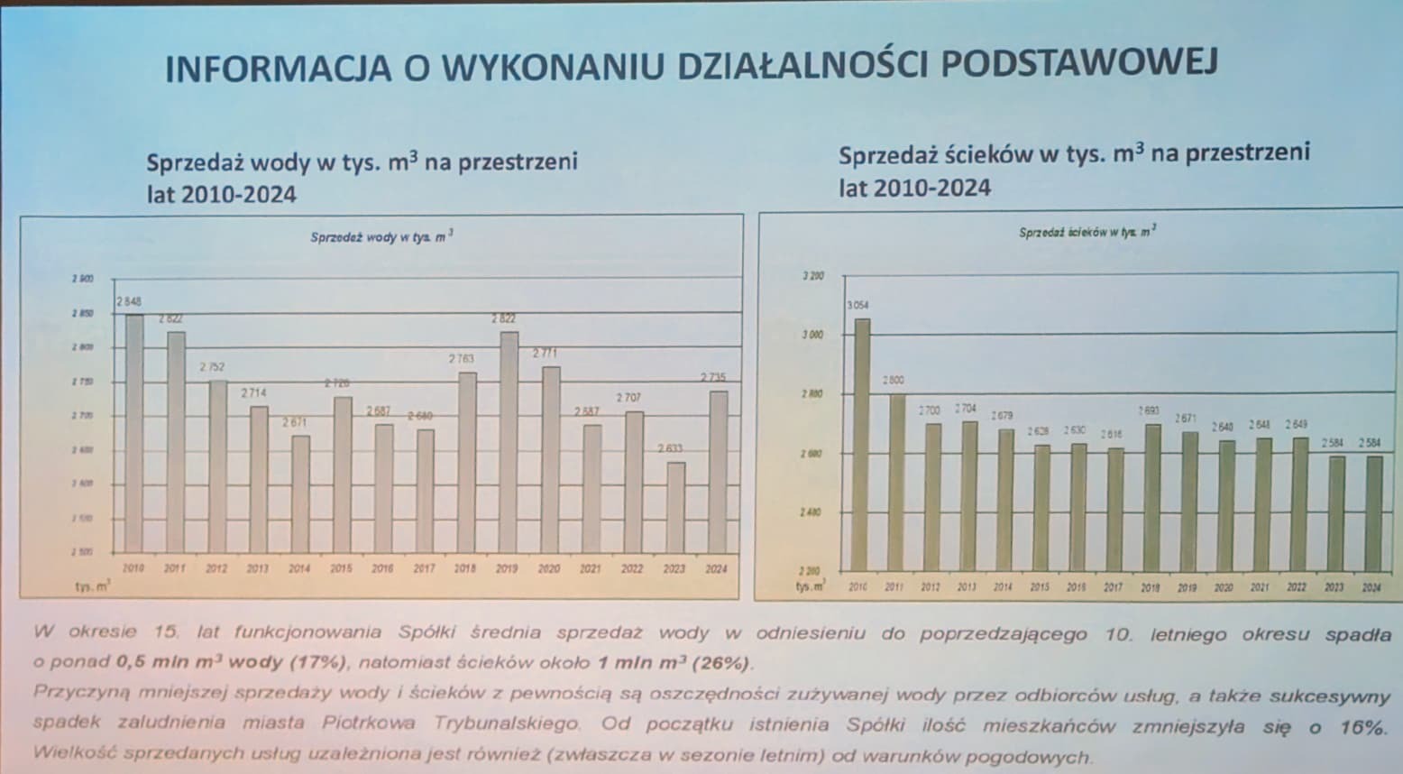Michał Rżanek - prezes Piotrkowskich Wodociągów i Kanalizacji przedstawia sprawozdanie ze swojej pracy w spółce.