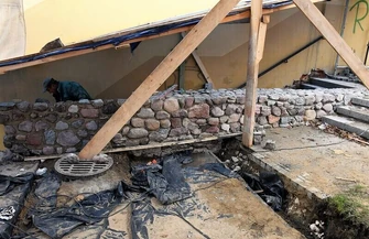 Obecnie odnawiany jest kamienno-ceglany wątek muru. Usunięte zostały już niewłaściwe uzupełnienia oraz stare przemurowania. Trwa wymiana części licówki oraz renowacja spoin. Dodatkowo w ramach inwestycji schody betonowe zostaną zamienione na stopnie z bloków granitowych, wykonany zostanie remont poręczy stalowej oraz balustrady wraz z rekonstrukcją brakujących i odłamanych metalowych elementów.