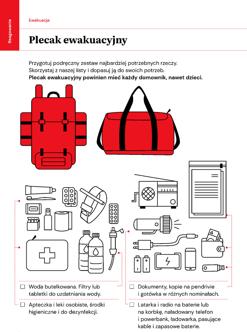 zasady ewakuacji i przygotowania plecaka ewakuacyjnego,