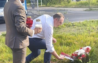 Uczestnicy spotkania złożyli wieniec i zapalili znicze na rondzie.