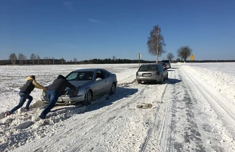 To jest tragedia i paranoja wczoraj o 1 w nocy jadąc autem ciężarowym holowałem lawetę z busem podjeżdżając pod górkę w miejscowości Łęczno zaraz za nadleśnictwem widząc 2 auta osobowe w rowie i jedno mordujące się z podjechaniem pod oblodzoną i zaśnieżoną drogę byłem zmuszony wytracić prędkość do 20km/h co skutkowało ściągnięciem lawety do rowu !!! Na nic się zdały 2h próby wyciągnięcia auta jak i innych kierowców !! O godzinie 2 w nocy dzwoniłem po specjalistyczny sprzęt do wyciągnięcia mnie na w miarę odśnieżoną drogę (...) Pomijam fakt , że laweta stała już pod takim kątem, że groziła wywróceniu się wraz z całym zestawem, osobówki pchały się panicznie aby tylko mnie ominąć, niestety wszystkie utykały w bryłach śniegu [pisownia oryginalna -red.]