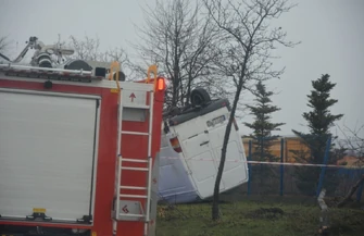 Z niewyjaśnionych przyczyn dostawczy mercedes wypadł z drogi i dachował. Świadkowie zdarzenia twierdzą, że kierowca był pod wpływem alkoholu. Tą informacje potwierdza policja.