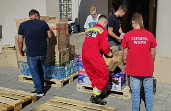 - Najwięcej jest wody, bo sześć palet i żywności. Ale staraliśmy się też kupić – zgodnie z prośbą – jakieś materiały budowlane, worki na śmieci, szpadle, łopaty. Rozmawialiśmy z dyrektorem „Chrobrego” w Kłodzku i powiedział, że bardzo chętnie przyjmą te dary i rozdysponują wśród mieszkańców – wyjaśnił Marcel Łągiewski, uczeń I LO w Piotrkowie, ratownik WOPR.