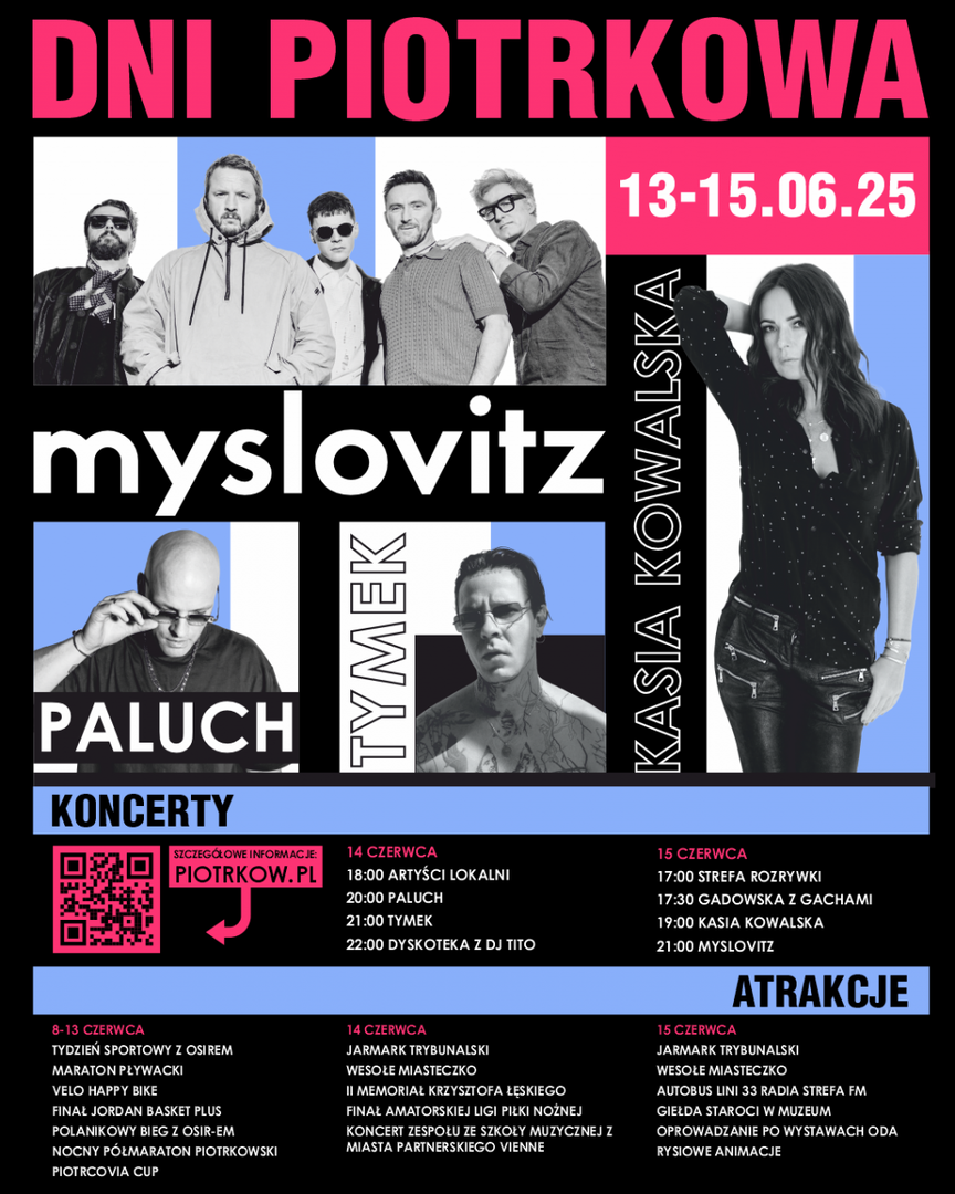 Jarmark Trybunalski, wesołe miasteczko oraz sportowe emocje a wieczorem na dużej scenie wystąpią raperzy Paluch i Tymek. Sprawdź co dzieje się w sobotę na Dniach Piotrkowa 2025!