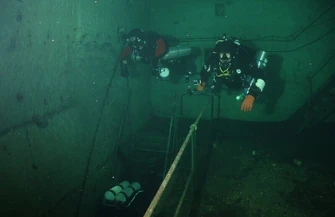 Tymczasem pracujący na lotnisku Marcin Pampuch umieścił miejską flagę pod wodą. Kobanya bo tak nazywa się kopalniany kompleks działał po Budapesztem od XVIII w. Wydobywany tam wapień służył do budowy wielu budynków w Budapeszcie. Potem z kopalni korzystał browar, który produkował wyśmienite piwo, teraz produkcje przeniósł na powierzchnie. W całej kopalni jest ok 30 km korytarzy, z których wiele jest zalanych krystalicznie czystą wodą. Do kopalni można się dostać tylko ze specjalnym pozwoleniem w towarzystwie przewodnika. Nurkowanie w tej kopalni wymaga wielotygodniowego przygotowania. Grupa, która eksplorowała kopanie złożona była z 5 nurków z klubu U-dive.pl Nurkowie wykonali 4 nurkowania, każde o czasie trwania ponad 45 min. Pod wodą w niezliczonych korytarzach można znaleźć pozostałości wyposażenia technologicznego nie działającej już kopalni a teraz jest tam także flaga Piotrkowa Trybunalskiego.