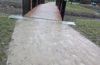Alejki zostały wykonane w oparciu o dokumentację, zgodnie z projektem w sposób prawidłowy. Po opadach i roztopach, z uwagi na uwarunkowania terenowe /najniżej położone miejsce w parku/ materiał uległ czasowemu uplastycznieniu. Odbiór inwestycji odbył się 20 grudnia 2022 roku, czyli w sezonie zimowym. Między innymi dlatego, zgodnie ze zgłaszanymi uwagami, ustalono, iż w okresie wiosennym, najpóźniej do połowy kwietnia 2023 roku dokonany zostanie przegląd całego obiektu, ze szczególnym uwzględnieniem wykonanych alejek.