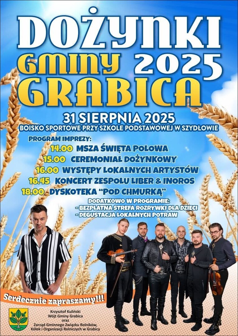 Mieszkańcy  gminy Grabica spotkają się na corocznych Dożynkach Gminnych, które odbędą się w niedziele 31 sierpnia w Szydłowie na boisku sportowym przy szkole podstawowej o godzinie 14:00. Święto plonów to doskonała okazja do wspólnego zakończenia żniw, wyrażenia wdzięczności rolnikom i doświadczenia lokalnej kultury w najlepszym wydaniu.