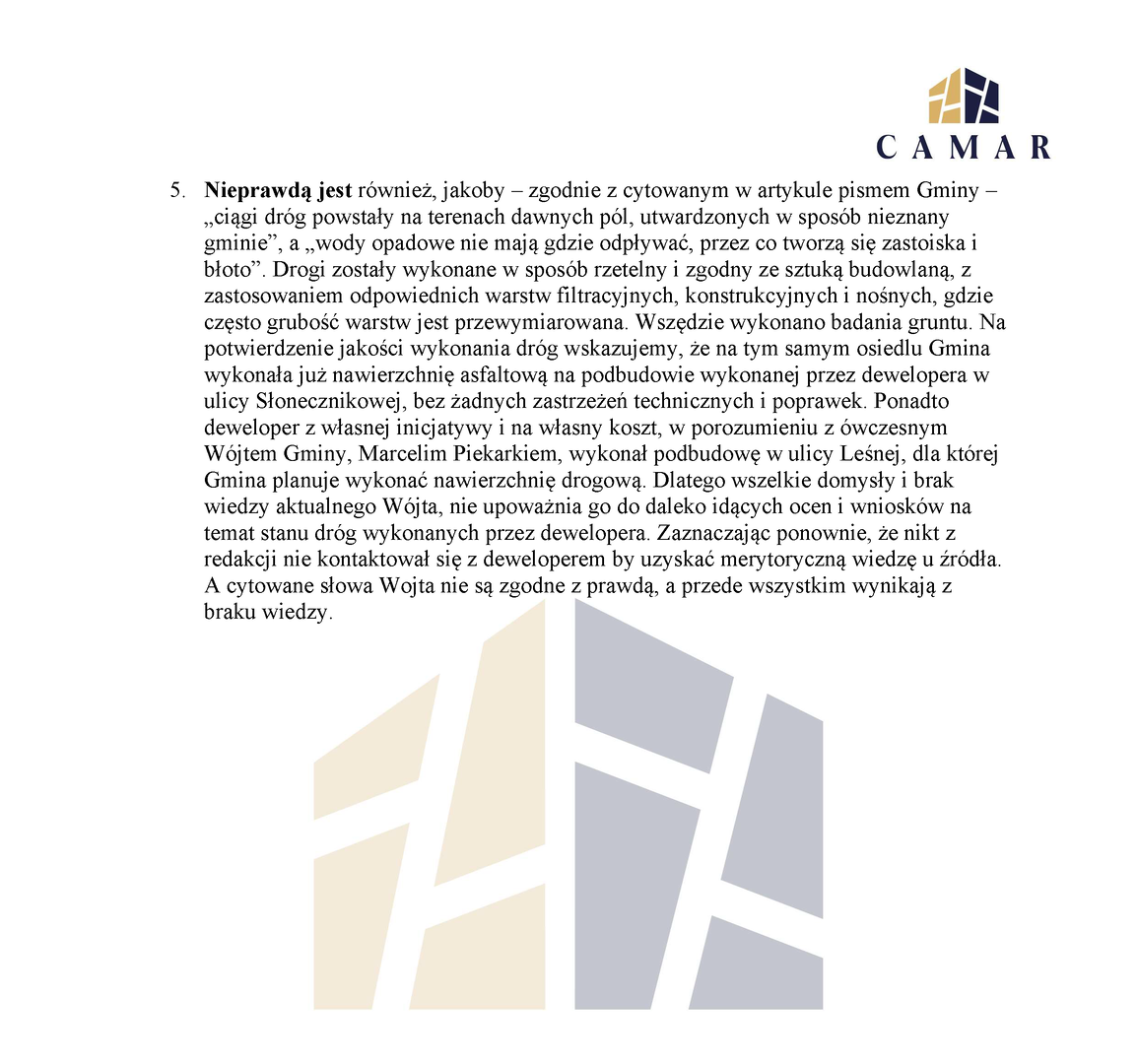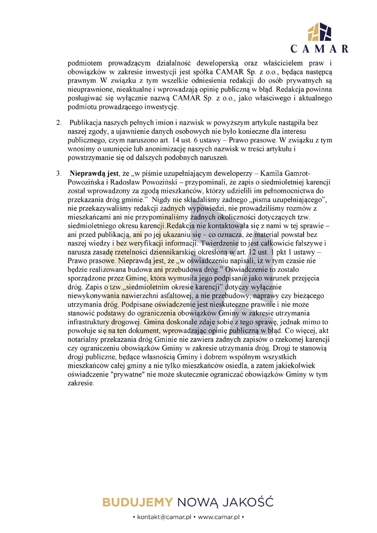 Redakcja otrzymała sprostowanie od jednej ze stron w związku z naszym wcześniejszym materiałem dotyczącym stanu dróg na osiedlu w Rakowie Dużym. Poniżej prezentujemy jego treść odnoszącą się do faktów.