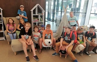 Nie zabrakło także teatralnych wrażeń, a te uczestnikom świetlic dostarczyli aktorzy z łódzkiego teatru WidziMisie. Historię Żabiego Królewicza dzieciaki oglądały z wielkim zainteresowaniem, podobnie jak i przygody charyzmatycznego sir Lionela Frosta najlepszego w świecie poszukiwacza mitów i potworów, który wyrusza w dzikie ostępy Ameryki Północnej w poszukiwaniu Wielkiej Stopy, bo o tym właśnie opowiadał film zaprezentowany w ramach środowego seansu pt.”Praziomek”. Było także coś dla miłośników pływania, a tych jak się okazało nie brakowało. Tylu mistrzów pływackich na basenie przy ul. Belzackiej nie było chyba już dawno.