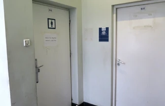 Inna kobieta zwraca uwagę na dworcowe toalety.