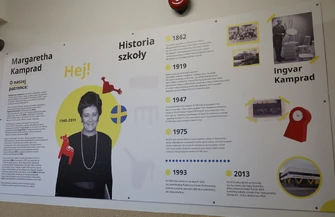 Następnie uczniowie i goście mieli okazję poznać bliżej sylwetkę patronki szkoły – Margarethy Kamprad – kobiety o wielkim sercu, której zaangażowanie i pomoc pozwoliły na powstanie nowoczesnego budynku szkoły w Jarostach. Kolejnym punktem programu była prezentacja multimedialna przypominająca początki istnienia szkoły oraz współpracę z IKEA.