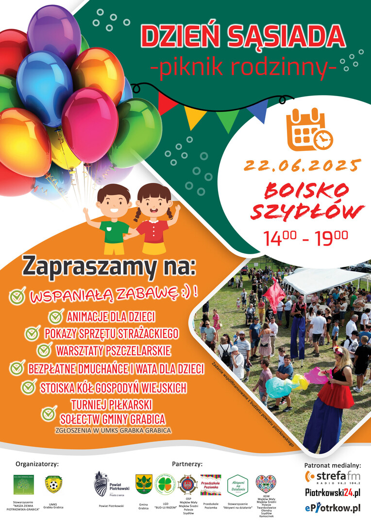 "Dzień sąsiada" startuje o godzinie 14:00. Wydarzenie organizowane jest przez Nasza Ziemia Piotrkowska - Grabica i UMKS Grabka Grabica.