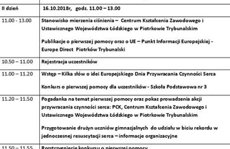 Piotrkowska edycja tego wydarzenia potrwa dwa dni. W poniedziałek odbędzie się szkolenie z pierwszej pomocy dla uczniów, a także otwarte bezpłatne szkolenie dla osób dorosłych. - We wtorek wraz z uczniami piotrkowskich szkół po raz kolejny bierzemy udział w biciu rekordu w jednoczesnej lekcji resuscytacji krążeniowo-oddechowej, organizowanym przez Wielką Orkiestrę Świątecznej Pomocy – mówią organizatorzy. - Nie zabraknie konkursu, a także pogadanek i pokazu akcji przywracania czynności serca.