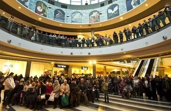 Tuż po konkursowych zmaganiach na ruchomych schodach w galerii zjechały tancerki Rewii Viva, aby już na scenie pokazać, co potrafią.