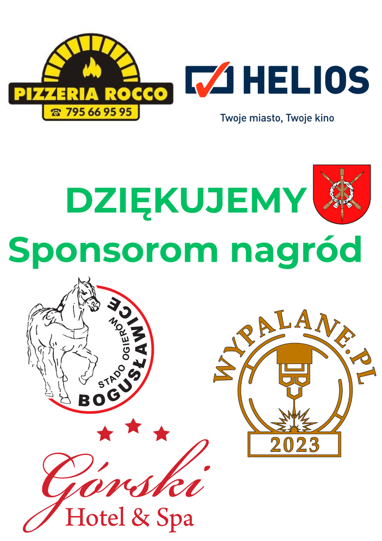 Organizatorzy serdecznie dziękują sponsorom nagród, którzy wsparli inicjatywę i przyczynili się do jej sukcesu: Stado Ogierów w Bogusławicach, Hotel Górski&Spa, Kino Helios, Pizzeria Rocco, Wypalane.pl