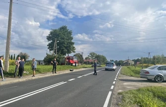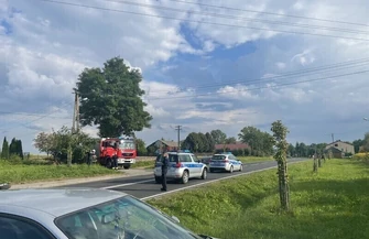 Około godziny 14:40 doszło do zderzania opla z motocyklem. Z relacji świadków wynika, że kobieta kierująca samochodem osobowym „ścięła zakręt” i uderzyła w jadący z naprzeciwka motor. Siła uderzania była tak duża, że motocykl został odrzucony co najmniej kilkadziesiąt metrów od miejsca zderzenia. Kierującej oplem nic się nie stało, a motocyklista z licznymi złamaniami został przetransportowany do szpitala.