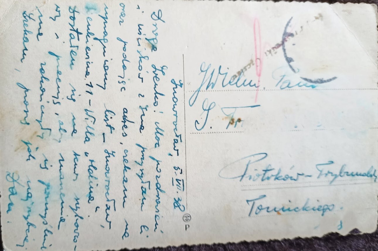 W lipcu 1938 roku pan podpisujący się imieniem Dan (zapewne Daniel) napisał z Inowrocławia widokówkę do swojej sympatii w Piotrkowie, pani Ireny. Co ciekawe o tej interesującej kartce poinformowała nas telefonicznie mieszkanka… Szczecinka. Próbowaliśmy dotrzeć do rodziny pani Ireny i ustalić jakie były jej losy.