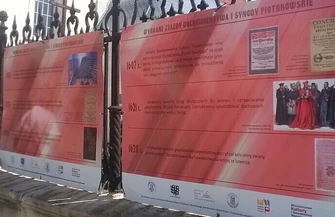 Na przykościelnym parkanie zaprezentowana została natomiast wystawa plenerowa w postaci ilustrowanego kalendarium informującego o najważniejszych synodach oraz ich znaczeniu dla historii Państwa i kościoła w Polsce. - Zwyczaj odbywania w synodów kościelnych w murach piotrkowskiej fary zapoczątkował biskup Zbigniew Oleśnicki, który w 1435 r. zwołał zjazd duchowieństwa dla zaaprobowania prawa do tronu dla małoletniego syna Jagiełły – Władysława – wyjaśnia P. Kendra. - Tu uchwalano też podatki od dochodów kościelnych na potrzeby ojczyzny, podatki na rzecz reformy Akademii Krakowskiej, a także w celu walki z reformacją. W 1530 r. abp Jan Łaski zwołał synod w sprawie zaprowadzenia karności wśród duchowieństwa świeckiego i zakonnego. Poruszony został też problem szerzącej się reformacji. Kilka lat później zaakceptowano tu ostateczną redakcję wydania zbioru tzw. „Statutów Łaskiego”, a Marcin Kromer wygłosił mowę „O godnym sprawowaniu urzędu kapłańskiego” W 1551 r. w kościele farnym kardynał Stanisław Hozjusz ogłosił zarys „Confessio fidei catholicae christianae”. Potępione zostało wówczas dzieło Andrzeja Frycza Modrzewskiego „O naprawie Rzeczypospolitej” W 1577 r. przyjęte zostały uchwały soboru trydenckiego, które obowiązywać miały odtąd w całym kraju. W 1628 r. ostatni synod do Piotrkowa zwołał prymas Jan Wężyk. Wówczas Jan Foks, archidiakon krakowski, ułożył nowy rytuał kościelny zwany „piotrkowskim”.