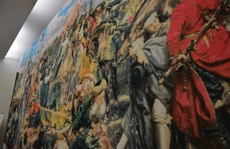 Obraz ostał wykonany haftem komputerowym. Do jego stworzenia użyto nici w 220 kolorach, których łączna długość wynosi 178 kilometrów. Mimo, że haftowały go maszyny, to jego stworzenie trwało rok. Złożony jest z oddzielnie zadrukowywanych haftem paneli, które składa się w jedną całość. Tworzy to bardzo wierną kopię dzieła Jana Matejki. Ten obraz był już pokazywany w kilku miejscach, ale w Piotrkowie jest na pewno po raz pierwszy - dodaje prof. Lolo.