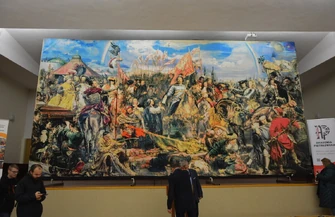 Jest to jeden z największych haftowanych obrazów na świecie. Jest bardzo wierną kopią działa Matejki, które znajduje się w Watykanie. Haftowana replika tego obrazu została przygotowana przez Fundację Wspierania Kultury, Sztuki i Tradycji Rękodzieła Artystycznego im. św. Królowej Jadwigi.