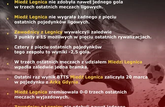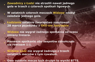 Piłkarze Widzewa w 3 z 4 ostatnich spotkań nie strzelili nawet jednego gola, co pokazuje, że Łodzianie w tym sezonie mają ogromne problemy z aspektem gry ofensywnej, czy to za starego trenera, czy już za nowego. RTS ma również negatywne wyniki w ostatnich meczach bezpośrednich z Miedzią Legnica. Łodzianie nie wygrali w żadnego z poprzednich trzech rywalizacji, ale dwie z nich zakończyły się remisem.