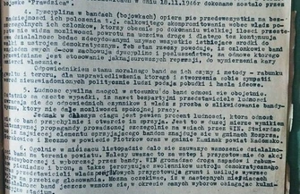 W aktach znajdziemy informację o działalności ówczesnego kapitana w regionie Piotrkowa i Radomska. – Dyscyplina w bandach (bojówkach) opiera się na beznadziejności ich położenia t.j. całkowitego skompromitowania wobec władz poszczególnych ich członków, którzy obecnie po dokonaniu olbrzymiej ilości przestępstw nie widzą możliwości powrotu na uczciwą drogę i dlatego też kontynuują swą działalność będąc zdecydowanymi używać wszystkie istniejące środki do walki z ustrojem demokratycznym - pisał m.in. kpt. Wojciech Jaruzelski.