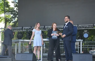 Prezydent Piotrkowa Juliusz Wiernicki wręczył klucz do miasta Paulinie Zdulskiej przewodniczącej samorządu studenckiego, reprezentującą piotrkowskich studentów.