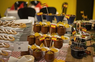 Bogate menu w formie urozmaiconego bufetu przygotowane wraz szefem Restauracji Miód i Wino to starannie dobrane produkty, wyjątkowa kompozycja składników oraz niezwykła aranżacja dań z zachodniej Europy. W bufecie znajdziecie zupę, dania główne, deser oraz mnóstwo innych obfitości - oczywiście wszystko w oparciu o kuchnię hiszpańską. Spotkanie odbędzie się w godzinach 19.00 – 22.00.