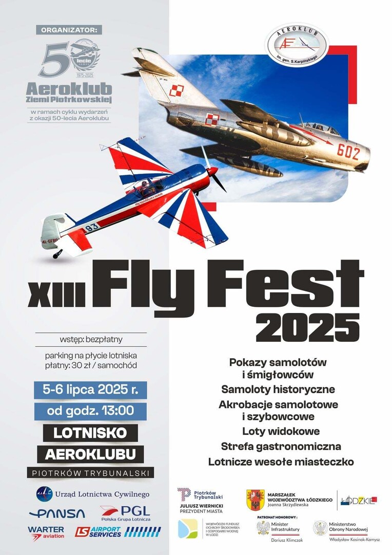 W tym roku Fly Fest organizowany jest z okazji 50-lecia Aeroklubu Ziemi Piotrkowskiej. W dniach 5–6 lipca 2025 r. na fanów lotnictwa będą czekały pokazy akrobacji, lotnicze gwiazdy.